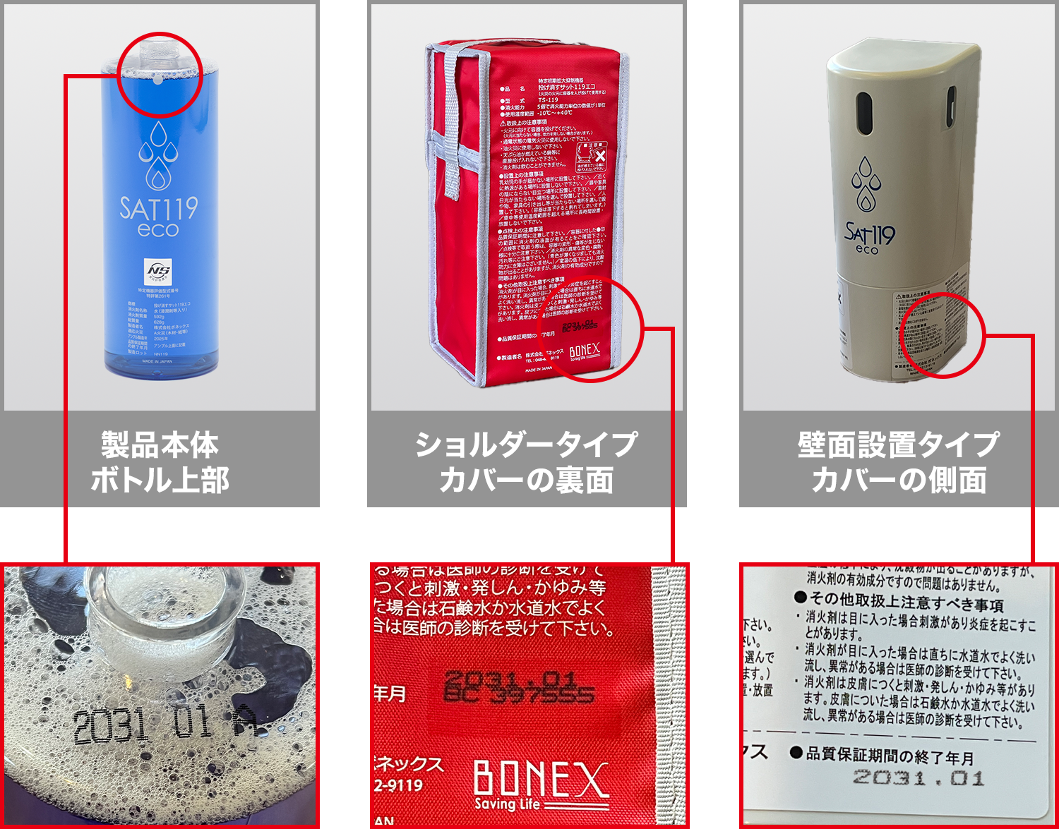 本製品には有効期限がございます。ご購入いただきました製品の以下の写真箇所をご確認ください。