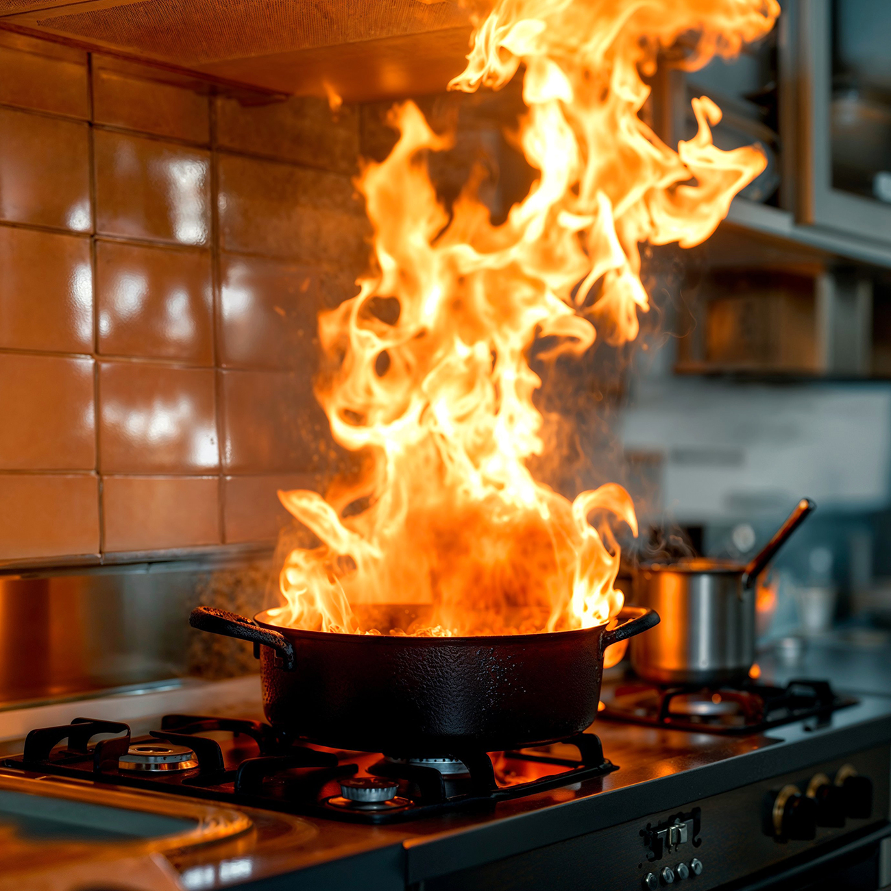住宅火災の発生原因最多はコンロ火災! なかでも、揚げ物油による火災は約半数です。 原因は・・・火元を離れてしまったこと。